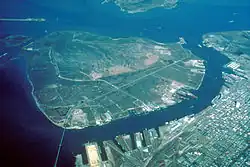 Aerial view of Pelican Island and the northeastern end of Galveston Island
