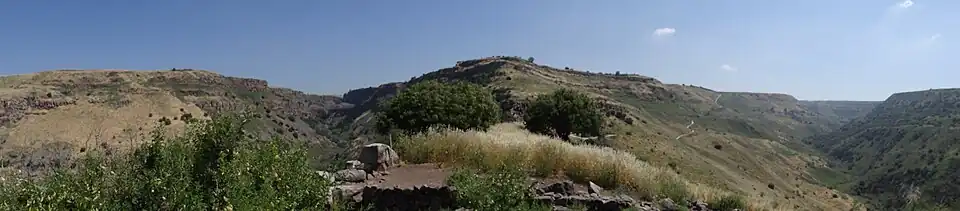 The nature reserve stretches along two streams, Gamla and the Daliot, and includes natural and archaeological attractions.[1] Among the former are the largest nesting colony of griffon vultures in Israel, various other birds of prey, among a variety of wildlife and wild plants.[1] Among the latter are the ancient city of Gamla and a Bronze Age dolmen field containing 716 dolmens.[1] At the head of the Gamla stream there is a 51-meter high waterfall, the highest in Israel and the Israeli occupied territories,[1] which dries up during summer and autumn.[2][1]