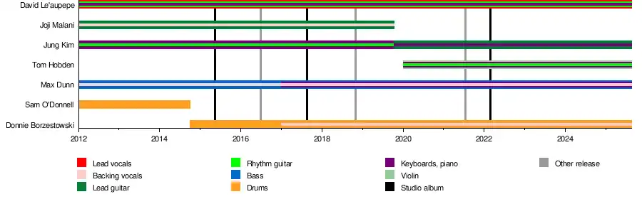 • David Le'aupepe – lead vocals, rhythm guitar, piano (2012–present)