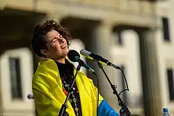 Gryniva was one of the leading musicians from Ukraine in Germany when Russia invaded the country in 2022.[7] She sang at a concert "Songs of Wounding" with Mariana Sadovska in support of Ukraine on 17 March.[8] Gryniva was one of the entertainers at the 10th Fridays for Future event in Berlin in April 2022 singing draped in a Ukrainian flag. She was one of the Jazz performers named for a "Peace on Earth" concert in Berlin organised by Wolf Kampmann to support Doctors without Borders. She was one of 70 performers who volunteered and she had her own arrangement of a folk song from Ukraine[9] for the concert.[10]