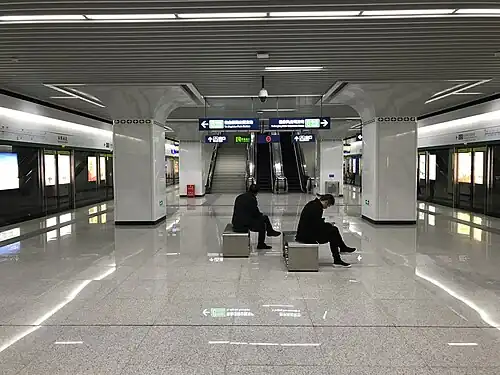 Garden Expo North Station (Chinese: 园博园北站) is a transfer station on Line 6 and Line 7 of the Wuhan Metro. It entered revenue service on December 28, 2016. It is located in Dongxihu District and it is the northern terminus of Line 7.[1][2]