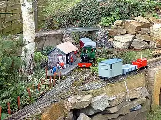 A garden railway or garden railroad is a model railway system set up outdoors in a garden. G Scale is the most popular scale for garden railroads, though 16 mm scale also has a following, especially in the United Kingdom. Model locomotives in this scale are often live steam scale models of British narrow gauge prototypes. 16 mm scale (which runs on 32 mm / 1.26 in) track, the same gauge as O gauge is probably now more popular in the UK than G scale.