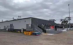 The facility was constructed from modular steel frames, designed to be disassembled and transported in shipping containers if required.[20] In addition to connecting temporary infrastructure like power, water, sewerage and covered walkways connecting it to the Canberra Hospital, the building required a specially designed ventilation and temperature control system. Each bed was contained within a mechanically controlled isolation area and to reduce the risk of indoor transmission, the air in these areas was ventilated 12 to 15 times per hour.[21] Despite these measures, a review of the hospital's readiness to act as an emergency ward in 2021 found there were significant issues with the building's layout, ventilation and fire safety that in some cases did not meet national health standards. Upgrades to address these issues were not undertaken as the facility's intended use changed soon after its construction.[22]
