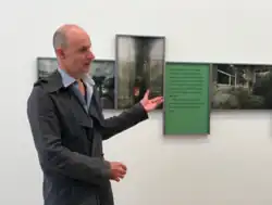 ![]() Gavin Hipkins with his work at the Adam Art Gallery, 2017 | |