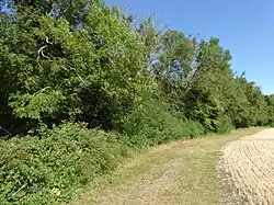 This ancient wood on poorly drained chalky boulder clay has coppiced hornbeam, ash and hazel with oak standards. The ground flora is especially diverse around the hornbeams and on wet rides.[3]
