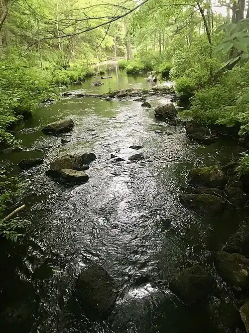 Gay City State Park is a public recreation area on the Blackledge River in the towns of Hebron and Bolton, Connecticut.[3] The state park occupies 1,569 acres (635 ha) bordering Meshomasic State Forest and is accessible from State Route 85. In addition to its deep forest, millpond, and marshland, the park bears trace remnants (foundations, stone walls, and ditches) of the mill town that occupied the site for most of the 19th century. The park is managed by the Connecticut Department of Energy and Environmental Protection.