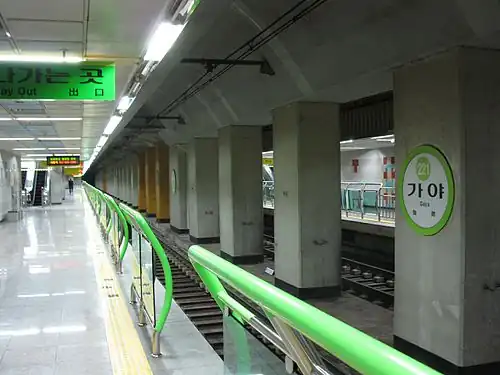 Gaya Station (Korean: 가야역) is a station on the Busan Metro Line 2 in Gaya-dong, Busanjin District, Busan, South Korea. The station is unrelated to the Gaya Station which used to be operated by Korail.