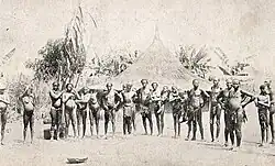 In the early 1900s, the area where the Gbaya lived became part of German Kamerun.[11] The Gbaya, who traditionally lived in small rural communities, strongly resented the forced urbanization brought by the Germans. Many tribes initially responded by moving away to remote areas, but a German repression campaign soon forced them back into submission.[12] By 1910, all the resisting tribes had been subdued, and their leaders had been hanged.[13] From 1912 onward, many Gbaya tribes were forced to collect rubber for the Germans.[14]