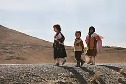 Afghan children walk along a road near a bazaar in the Gelan district, Ghazni province, Afghanistan, Nov. 2, 2013