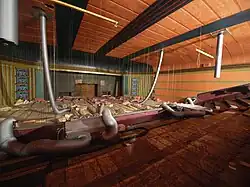 Interior view of the George from the balcony, showing the false ceiling and several original features (2016).