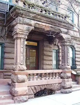 The entrance to 112 East 17th Street (1890-91), built as the Fanwood Hotel, between Union Square East and Irving Place in the Union Square neighborhood of Manhattan