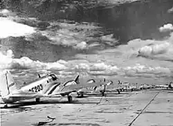 The school was opened on 10 August 1942 under the USAAF Eastern Flying Training Command, its mission to provide advanced (3d phase) pilot training in twin-engined aircraft.[5] Training was conducted by the 30th Two Engine Flying Training Group [6] using the Beechcraft AT-10 Wichita. Planes from George Field were fuselage-coded "GE".[7]