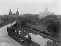 The Memorial Arch was built as a gateway to the pre-existing Park River Bridge, which was renamed the Soldiers and Sailors Memorial Bridge.[5] The bridge remains although the river has since been relocated and capped. The upper portion of the bridge arches can still be seen even though the river bank has since been raised and turned into parkland.