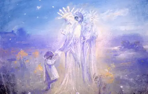 Russell reported seeing visions since when he was a young man, including one in which it was revealed to him a new name: Aeon, which he would only later find meaning in quotes he was unaware of. In another one, as described in Song and its Fountains: