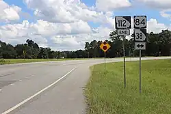 SR 112 begins at an intersection with US 84/SR 38 (Bill Stanfill Highway) in the northern part of Cairo, in Grady County. It heads northwest and curves to the north, until it intersects SR 262 (County Line Road) on the Grady–Mitchell county line. The road curves to the northeast to an intersection with SR 65. The road continues to the northeast, passing the Camilla–Mitchell County Airport, just before entering Camilla. In town, it meets SR 97 (Bainbridge Road), and the two highways run concurrent farther into town. At South Butler Street, SR 97 splits off to the northwest, while SR 37 Truck begins concurrent with SR 112. The concurrent routes meet SR 37 (Newton Road). At West Oakland Avenue they turn to the east. At the intersection with US 19/SR 3/SR 300 (Georgia–Florida Parkway), SR 37 Truck turns to the south, while SR 112 continues to the east. The highway heads northeast and has an extremely brief concurrency with SR 93 in Lester. Shortly afterward, SR 112 crosses into Worth County. A little while after crossing into the county is SR 133. The route continues to the northeast, until it enters Sylvester. In town, it intersects US 82/SR 520 (Franklin Street). The three highways head concurrent to the east for less than 1,000 feet (300 m). At the intersection with SR 33, SR 112 turns to the north with SR 33 for just under 2,000 feet (610 m). SR 112 splits off to the northeast and passes through rural areas until it crosses into Turner County. In Ashburn, it meets SR 32. The two routes run concurrent into the main part of town. There, they intersect US 41/SR 7. At this intersection, SR 32 departs to the south-southeast, while SR 112 continues to the east-northeast. It continues along it routing until it reaches an interchange with Interstate 75 (I-75), just before leaving town. At the east end of the interchange, SR 107 begins concurrent with SR 112. Just over 2 miles (3.2 km) later, SR 107 departs to the northeast into Rebecca. In Rebecca, it meets SR 90 (Ashley Street East). The two routes head concurrent to the northwest for about 0.2 miles (0.32 km). SR 90 splits off to the northwest along North Railroad Street, while SR 112 heads northeast, and then northward, on Sylvester Road. A few miles to the north, the road enters Wilcox County. After the county line, it continue to the north and curves to the northeast. Just before entering Rochelle, it intersects SR 233. The two routes begin a concurrency through town. In the southern part of town, SR 215 (5th Avenue) joins the concurrency. A few blocks later, the concurrent routes meet US 280/SR 30 (1st Avenue). At this intersection, SR 215 departs to the west, while SR 112/SR 233 continue to the north. North of town, the two routes split, with SR 112 heading northwest. It travels through Pineview and into Pulaski County. The road heads northwest and curves to the northeast to an intersection with US 129/SR 11. The concurrent routes head northward into Hawkinsville. In town, they meet SR 27/SR 230/SR 257 (Broad Street). At this intersection, US 129/SR 11 head west, while US 129 Business/SR 11 Business head north and US 129 Alternate joins the concurrency. East of town, US 129 Alternate/SR 112/SR 257 head north, while SR 230 heads south and SR 27 head to the east. Almost immediately is an intersection with US 341/SR 26. Here, SR 26 joins the concurrency, while SR 27 departs to the east, running concurrent with US 341. US 129 Alternate/SR 26/SR 112/SR 257 head northeast for a short distance, until SR 257 leaves the concurrency to the northeast. US 129 Alternate/SR 26/SR 112 head to the northeast and enter Bleckley County. In Cochran, the three highways meet US 23 Business/SR 87 Business (South 2nd Street). At this intersection, SR 26 continues to the northeast on East Dykes Street, while US 23 Business/US 129 Alternate/SR 87 Business/SR 112 head northwest and then curve to the northeast to an intersection with US 23/SR 87. At this intersection, US 23 Business/SR 87 Business end. US 23/US 129 Alternate/SR 87/SR 112 head northwest, until SR 112 splits off to the northeast. It has an interchange with I-16. Almost immediately, the road crosses the extreme southeastern corner of Twiggs County and enters Allentown. The Twiggs–Wilkinson county line runs through the town's limits Farther into town is US 80/SR 19. The highway passes through rural areas of the county to an intersection with US 441/SR 29 in Nicklesville. The road curves to the north, to meet SR 57 (Irwinton Road) in Toomsboro. Then, it curves to the northwest, to enter Baldwin County. SR 112 continues to the northwest and meets its northern terminus at an intersection with SR 540.