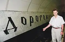 He has at the same time studied sources on the language, genetics, history, and culture of Ukrainians. The results of his research on linguistic-historical themes were printed in newspapers: Holos Ukrayiny,[4] Evening Kyiv,[5] Khreshchatyk,[6] Ukrayina Moloda,[7] Literary Ukraine,[8] and others.[9] Against the resistance of the Kyiv municipal administration, but with public support, he brought about the naming of a new metro station by the annalistic name "Dorohόzhichy",[10] and as a result of that got from journalists the honorary title: "godfather" of the name "Dorohόzhichy". His research about early prehistoric Kyiv and the historical way of the Ukrainians became the basis for his book Київ досвітній (2014),[11] for which he was awarded the title of laureate of the Mykhajlo Chabanivskyi Ukrainian literary Prize. The publishing house "Glagoslav Publications" (Great Britain) published his e-book Ancient Ukraine and Early Kyiv in 2016,[12] intended for the readers in the Ukrainian diaspora.