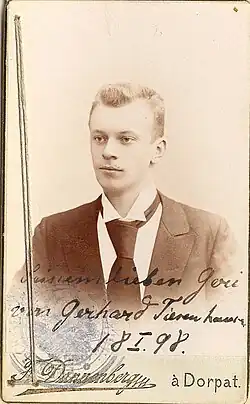 Gerhard Diedrich Jakob von Tiesenhausen (Latvian: Gerhards fon Tīzenhauzens; 26 March 1878 in Tartu – 26 October 1917 in Tiraspol) was a Livonian Art Nouveau architect. He was from the Tiesenhausens ancestry, father of Hans-Diedrich von Tiesenhausen.[1]