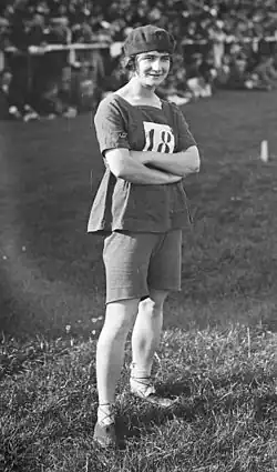 Germaine Delapierre, graduate in philosophy, was, with the sisters Brulé and Liébrard, one of the founders on 27 July 1912 of Femina Sport, while Faivre Bouvot was the first president.[2] During the great War, these women indicated their desire to break with the prevailing sexual codes of physical activities by adopting the athletic sports. The club itself was a bastion of feminism in sports with Alice Milliat as one of the key militants.[3]