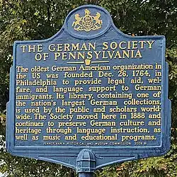 - ^ Harry W. Pfund, A History of the German Society of Pennsylvania: Bicentenary Edition 1764-1964. Second, revised edition. Philadelphia: German Society of Pennsylvania, 1964.