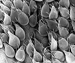 - ^ Adam RD (July 2001). "Biology of Giardia lamblia". Clin. Microbiol. Rev. 14 (3): 447–75. doi:10.1128/CMR.14.3.447-475.2001. PMC 88984. PMID 11432808.