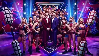 The series is presented by Bradley Walsh and his son, Barney.[1] Each episode consists of four players, known as 'contenders' – two male and two female – competing in a series of physically challenging events against the show's resident 'Gladiators', a group of elite athletes – such as bodybuilders or track and field athletes – and eventually competing in one contenders-only final event, the Eliminator. The series has introduced a total of 18 new Gladiators.[2] The series consists of the heats, the quarter-finals, the semi-finals and a grand final, to determine the overall champions. It is refereed by Mark Clattenburg, assisted by Sonia Mkoloma and Lee Phillips, with voice-over commentary provided by Guy Mowbray.