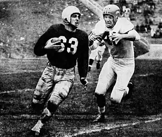 Christian had his requests for employment rejected by the Edmonton Eskimos and Calgary Stampeders of the WIFU.[3] However, when he later mentioned that he was born in Canada, which qualified him as a non-import player, the Stampeders signed him to a contract.[3] He played offense, defense, and served as a kicker during his professional career.[1][3] He played in 16 games for the Stampeders in 1953, rushing for 104 yards, catching five passes for 140 yards, returning 14 punts for 145 yards, returning 12 kickoffs for 257 yards, and kicking off seven times for 332 yards.[1] Christian also scored one field goal, one rogue, and 14 extra points during the 1953 season.[4][3] He played in 11 games in 1954, totaling two interceptions for 62 yards and one touchdown, 39 punt returns for 415 yards and one touchdown, one punt for 32 yards, and three fumble recoveries.[1] Christian played in five games for the Stampeders in 1955 and recovered two fumbles. [1]