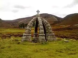 Queen Victoria and her consort Prince Albert purchased Balmoral Castle and delighted in travelling the mountain routes around. In 1861 they rode the 15 miles (24 km) from Balmoral to Glen Mark and met with Lord Dalhousie beside an artesian well. Here they were refreshed by the spring water before continuing to Invermark Lodge where they stayed overnight. To commemorate the visit, Lord Dalhousie erected a monument in the shape of a royal crown over the well. An inscription on the monument reads: