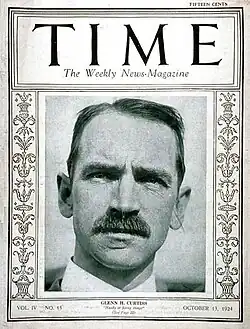 The Glenn H. Curtiss Museum in Hammondsport is dedicated to Curtiss' life and work. Curtiss' famed airplane appeared on a 1918 issue U. S. airmail stamp. along with fifteen other US airmail stamps, (including the first air mail stamps), and on the stamps of at least 17 other countries.[58] Curtiss himself appeared on the cover of Time in 1924.