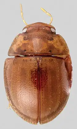 Small beetles (1.9–2.3 mm), broadly oval in dorsal view and strongly convex in lateral view, yellow to orange-brown in coloration, with long maxillary palps. A complete diagnosis was presented by Girón and Short.[1]