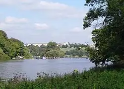 In 1872 the island, then called Petersham Ait, was bought by a Richmond-based waterman named Joseph Glover for £70 (equivalent to £8,000 in 2023);[1] he later advertised it for resale in 1895. Clementine trees were planted on the island in 1897. Sir John Whittaker Ellis, Mayor of Richmond,[1] had a house along the aristocratic row on the place with the highest, definitive Thames Arcadia view.[3] This is on the steep terrace of Richmond Hill above public pleasure gardens. Ellis declined to buy the island at £5,000 (equivalent to £730,000 in 2023), so suggested that the Richmond Corporation should be approached.[1] The view itself had been painted by John Wootton in about 1740 as A View From Richmond Hill. An English Arcadia.