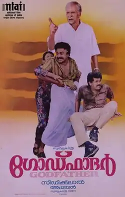 Godfather is a 1991 Indian Malayalam-language action comedy drama film written and directed by Siddique–Lal. It is produced by Appachan under the banner of Swargachithra. The film stars N. N. Pillai, Mukesh, Thilakan, Innocent, Bheeman Raghu, Kanaka, Jagadish, Siddique, K. P. A. C. Lalitha and Philomina in supporting roles.[2] The film revolves around the rivalry between two families, the Anjooran and Anappara houses and the consequences faced when two members of the families fall in love.[3][4]