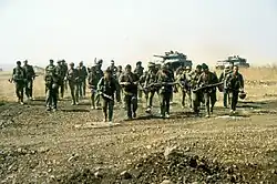 During the 1970s, Golani conducted frequent raids in Southern Lebanon in its battle against terror attacks and guerrilla raids by the Palestinian Fatah organization.[42] In March 1978, with the launch of Operation Litani, much of the brigade moved to capture the village al-Hiyam. The 12th Battalion captured Marjayoun and Rashaya al-Fukhar.[43][44] After clearing these villages, Golani units returned to Israel and advanced west along the Litani River, capturing a number of villages and stopping at Abbasiya just east of Tyre.[45]