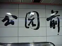 the calligraphy display on the Chinese characters of Gongyuangqian Station