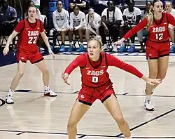 Gonzaga women's basketball players during a game at Tudor Fieldhouse in 2023