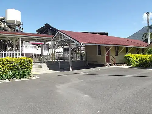 Gordonvale railway station is located on the North Coast line in Queensland, Australia. It serves the town of Gordonvale. The station has one platform. Opposite the platform lies a passing loop and a large sugar mill.