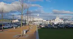 As part of a new one-way system completed in 2016, the station approach was reorganised, with new car parking and a promenade along past Kempock Point.