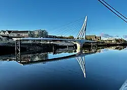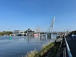The Govan-Partick Bridge is a footbridge in Glasgow, Scotland, designed to carry pedestrians and bicycles across the River Clyde, connecting Water Row in Govan to Pointhouse Quay in Partick, adjacent to the Riverside Museum.[1][2] To allow ships including PS Waverley to pass by, its swing bridge main span can rotate to align with the south shore.[3] The official opening ceremony on 6 September 2024 was followed by public access from the next day, when crowds celebrated with community events on both sides of the river.[2]