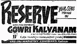 1. ^ "Gowri Kalyanam". The Indian Express. 9 November 1966. p. 3. Retrieved 31 August 2020 – via Google News Archive.