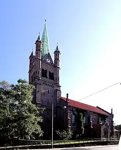 Grønland Church congregation was formed in 1861. Grønland Church was consecrated on March 3, 1869, by Bishop Jens Lauritz Arup. The church is characterized its tall and monumental tower surrounded by four smaller spires. The structure is of brick, in neo-Romanesque architectural style. Its architect was Wilhelm von Hanno. He also designed the school, former fire station and former police station, together with the church as a unified group of buildings in Grønland, a district that recently (1859) had been incorporated into Christiania (now Oslo). [2]