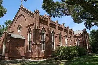 Grace Episcopal Church is an historic Episcopal church located at St. Francisville, West Feliciana Parish, Louisiana. The congregation was organized in 1827. The present church was completed in 1860, but it was heavily damaged by Union gunboats in 1863, during the Civil War.