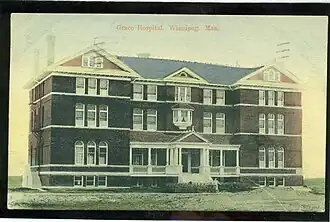 The hospital was founded on Ross Avenue in 1890 by the Salvation Army, as a rescue home for women and children. It was incorporated in 1904 as The Salvation Army Grace General Hospital, and was the first Salvation Army hospital to be incorporated in Canada. The hospital was not truly a general hospital until 1927, when it was expanded from a maternity hospital.[3]