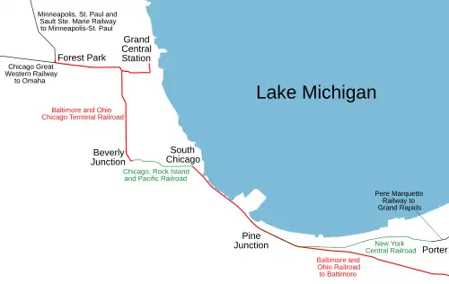 - ^ "News of the Railways: Officials of the Pennsylvania and Erie Roads Arrive in Chicago. Sessions to Be Secret. Near Suburban Service". Chicago Daily Tribune. April 25, 1900. p. 8. ProQuest 172973478. Archived from the original on March 4, 2016. Retrieved April 24, 2014.