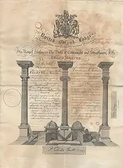 - ^ Rothwell, L.E. (1955). "The arms of the United Grand Lodge of Ancient Free and Accepted Masons of England". Coat of Arms. 21: 182–183.