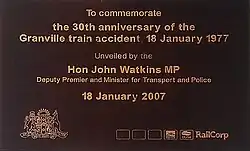 - ^ "Granville victims remembered". Australian Broadcasting Corporation. 18 January 2007. Archived from the original on 1 October 2008.