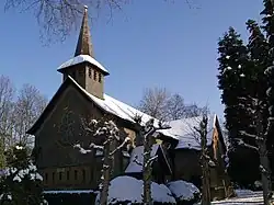 Consecrated in 1904, the Grade I listed parish church, St Mary the Virgin[20] is noted for its Art Nouveau interior,[21] and replaced the original St. Mary's church that was eventually taken down in 1923.[5] A little further to the south is The Kilns Hotel in the building locally known as The Brick House which dates back to the 16th Century and is Grade II listed.