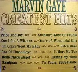 Greatest Hits is a 1964 greatest hits album, the first for American R&B-soul singer Marvin Gaye, released on the Tamla label.[1] Released during Gaye's first period of success, it was also his first charted album as a solo artist after making his album chart debut with the Mary Wells duet album, Together, the same year.