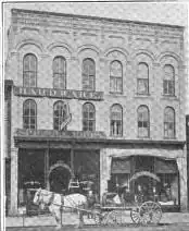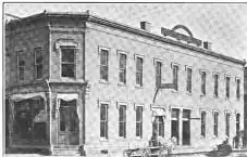 In 1870-71, Myron Rider and Thomas J. Potter constructed this brick building. It has a unique set of oculus windows above the third story, giving the structure a commanding appearance. At 50 feet high, it is still the tallest building located along Lafayette.[4]