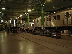 Greenwood Yard provides storage, inspection and running maintenance for the Line 2 revenue fleet, and contains major overhaul and repair shops for the entire subway fleet. Greenwood Yard is also a centre for the servicing and operation of workcars used by the Track and Structure Department to repair and maintain the entire subway system.[3]