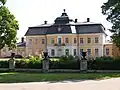 The first manor was finished in 1700, then rebuilt between 1749 and 1756 by architect Carl Hårleman for Claes Grill (I). After his death, the manor passed to his son Adolf Ulric. He was an avid naturalist and during his residence, he filled it with art and specimens of mounted animals, minerals, fossils and plants.[98] Adolph Ulric had a separate house built for his collection in 1786. He also started the construction of an English garden at Söderfors by the river Dalälven. Gustaf af Sillén completed the park, which is one of the main features in Söderfors.[100] As of 2014, the manor is a hotel and conference venue. On 20 December 1985, most of the ironworks and the surrounding area of Söderfors, a total of 91 buildings, became listed buildings, making it one of the largest listed sites in Sweden.[101] [102]