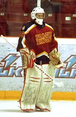 Grimsby goalie in warm-ups in 2012 playoffs.